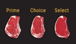 Choice and Prime beef feature different amounts of marbling. USDA Choice beef is divided into three categories: small, modest, and moderate marbling. USDA Prime includes slightly abundant or moderately abundant marbling. Learn more about USDA beef quality grades.